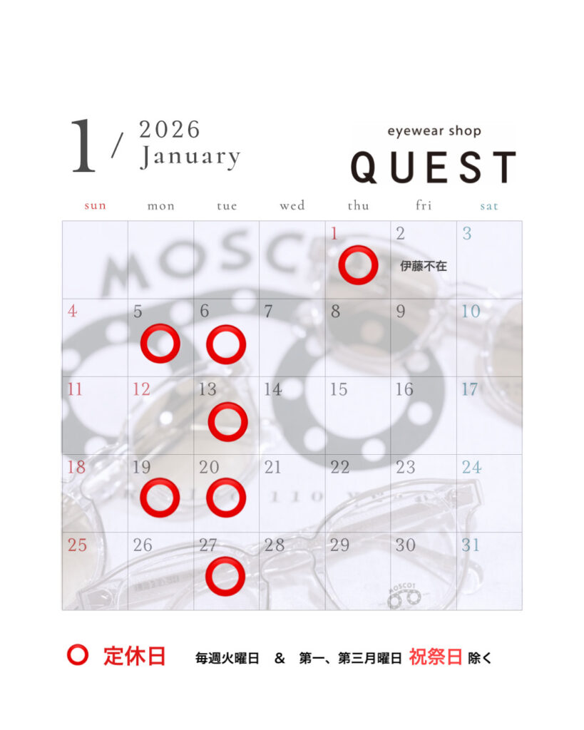 2026年は2日(伊藤不在)、3日から通常営業です。今年同様、毎週火曜日定休日&第一、第三月曜日を定休日とさせていただきます。